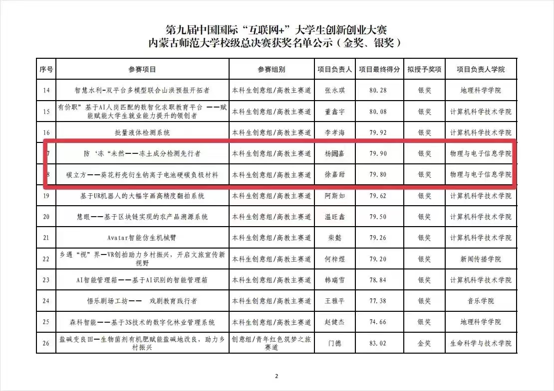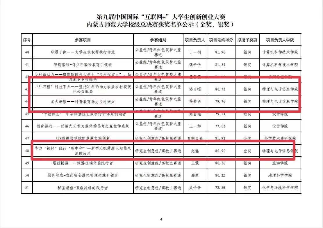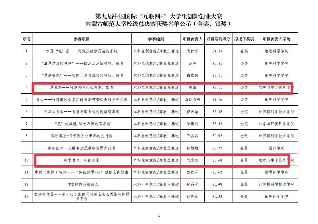 7月4日,第九届“互联网+”老员工创新创业大赛校赛决赛结束,公司摘得了三金四银的好成绩,其中“草立方——牧草补光生长方案开拓者”、“碳求真理,碳缩未来”、“'毕力'铜锌践行'碳中和'——新型无机薄膜太阳能电池的应用”获得高教主赛道本科生、研究生创意组金奖,“防'冻'未然——冻土成分检测先行者”、“碳立方——葵花籽壳衍生钠离子电池硬碳负极材料”获得高教主赛道本科生创意组银奖,“'红石榴'科技下乡——坚持21年的助力农业农村现代化公益服务”、“星火燎原——科普教育助力乡村振兴”取得了青年红色筑梦之旅公益组银奖。