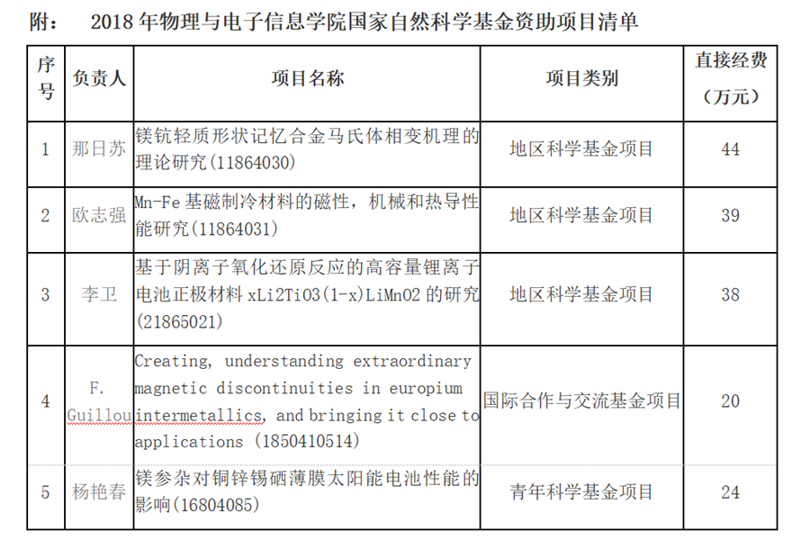 8月16日,国家自然科学基金委员会公布了2018年度国家自然科学基金项目评审结果,公司共获批各类基金项目5项,其中面上项目3项,青年科学基金项目1项,国际合作与交流基金项目1项,资助直接经费合计165万元。