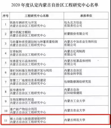 本网讯 日前,内蒙古自治区发展和改革委员会公布了内蒙古自治区工程研究中心名单,全区获批11家。公司依托英国威廉希尔公司申报的稀土功能与新能源储能材料内蒙古自治区工程研究中心成功获批。