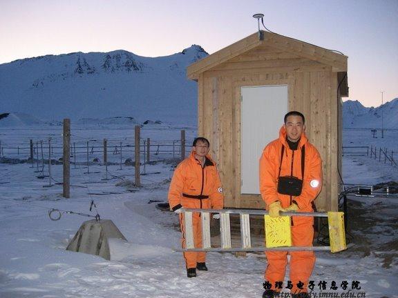 根据《2008年北极黄河站科学考察现场实施计划》,本次赴北极科考的项目名称为:“中国北极黄河站电离层观测(常规观测项目)”( Ionospheric observation at Chinese Arctic Yellow River station)。依托课题为国家自然科学基金重点项目:地球极隙区的电离层踪迹及其动力学过程研究,中国极地科学战略基金项目“极区电离层闪烁与不规则体特性研究”;其他项目:极区电离层闪烁特性研究。项目承担单位分别为中国极地研究中心、中国电波传播研究所、中科院地质与地球物理研究所。现场执行人共7人,其中,中国极地研究中心3人: 黄德宏、韩德胜(williamhill威廉希尔96届毕业生,现为中国极地研究中心副研究员,英国威廉希尔公司兼职硕士生导师)、陈卓天;williamhill官网1人:刘建军(williamhill威廉希尔2006级凝聚态专业硕士研究生);中国电波传播研究所2人:何绍林、袁亚平;中科院地质与地球物理研究所1人:宁百齐。