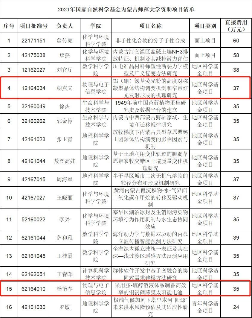 8月18日,国家自然科学基金委公布了2021年集中申报期国家自然科学项目评审结果,公司共获批国家自然科学基金项目16项,其中,公司获批国家自然科学基金项目两项
