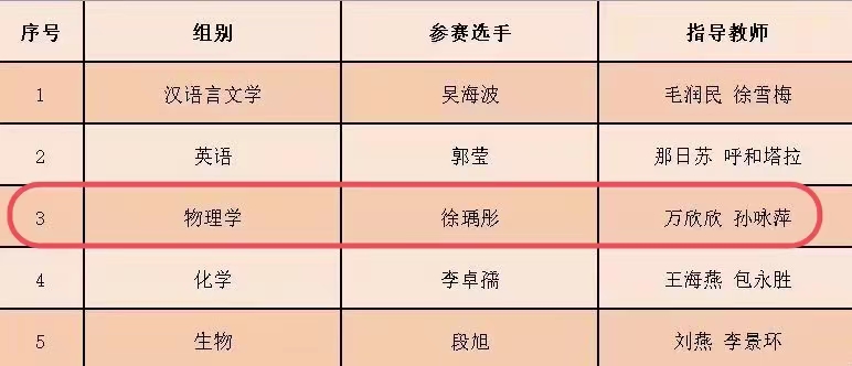 公司物理学专业2020级物理学汉二班徐瑀彤入围决赛