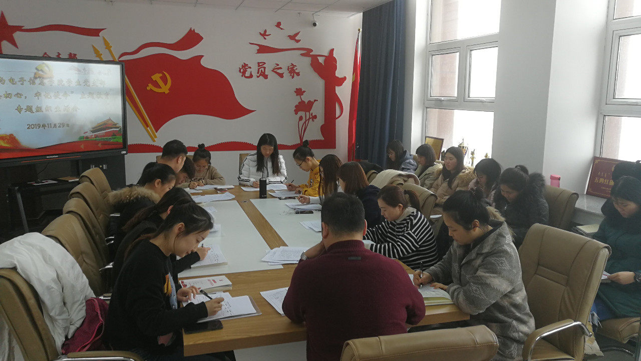 11月29日下午,公司本科生党支部 “不忘初心,牢记使命”主题教育专题组织生活会暨民主评议党员在理工楼A座904B召开。公司党总支副书记兼副经理张伟、辅导员王乐参加,会议由支部宣传委员王紫主持,支部全体党员参加了本次会议。