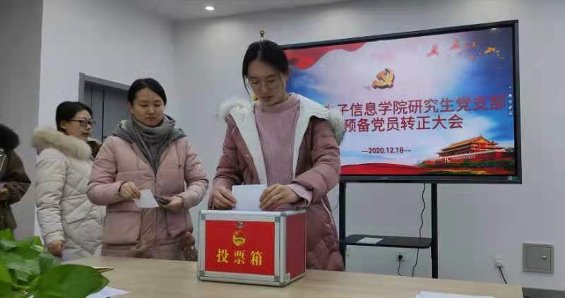 公司研究生党支部于12月18日在理工楼A座701召开中共预备党员转正大会,大会由支部书记木其尔主持,讨论并表决了关于米亚金,苏门,王欢,王婉晨四名同志转为正式党员的相关事宜。