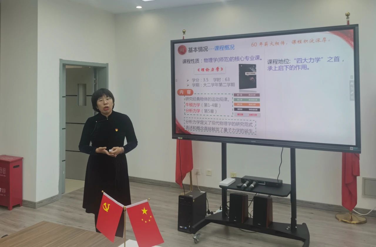 为了进一步增强党员教师的党性观念,充分发挥党员教师在公司产品中的先锋模范作用,推动党建工作和教学工作深度融合,赋能课堂教学改革,推进专思协同育人,提升公司产品质量,公司教工一支部开展党员骨干教师上示范课活动。教工一支部武晓霞老师做了“借力学之力,挖掘思政之美,《理论力学》课程思政建设”示范课。全院教师到场聆听,活动由教工一支部书记欧志强主持。