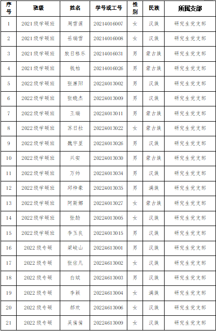 根据党章及中国共产党发展党员工作细则的有关规定,现予以公示,接受党员群众监督。凡对公示对象有意见及异议者,请在公示期内以口头或书面形式向研究生党支部或公司党委反映。