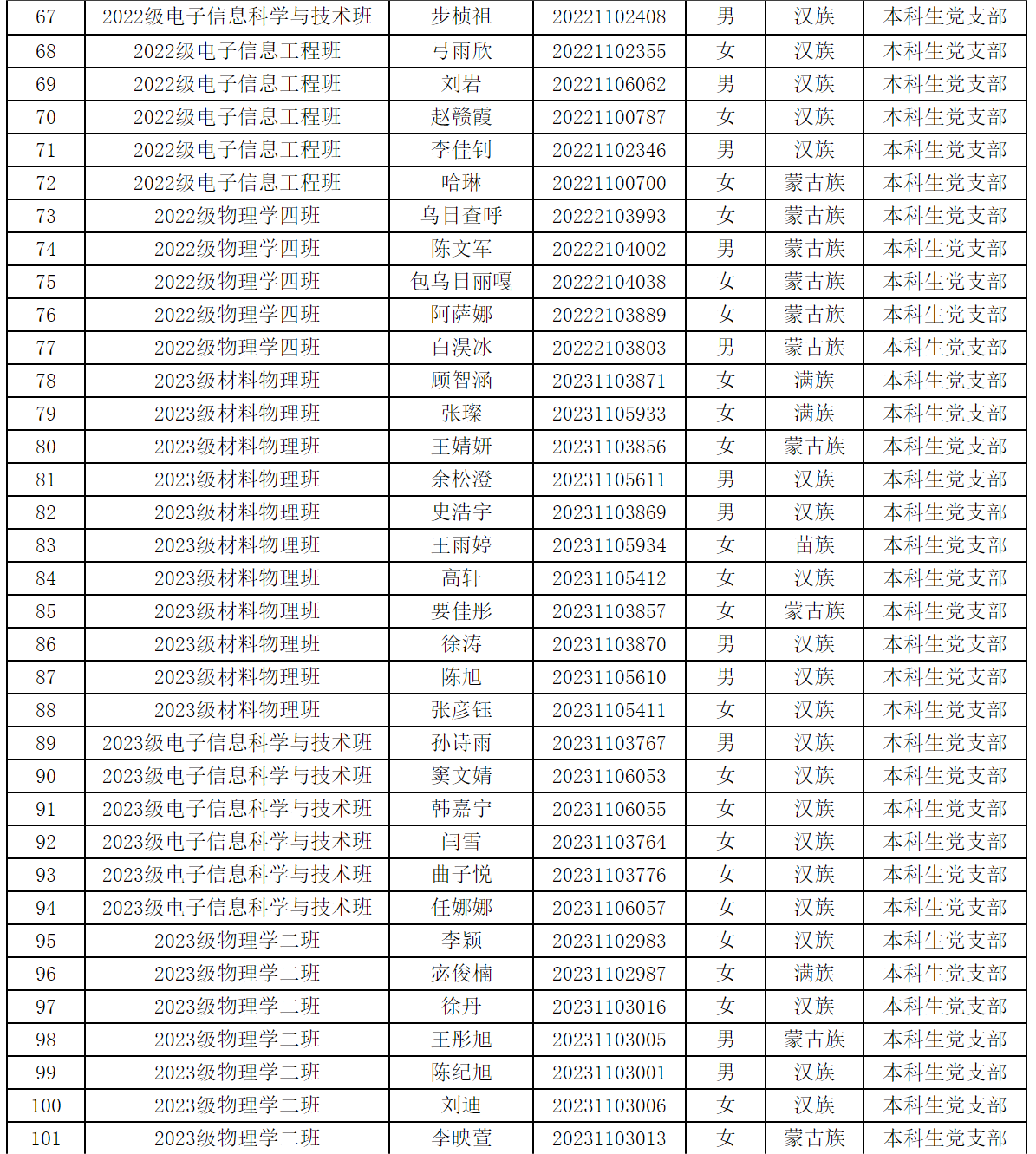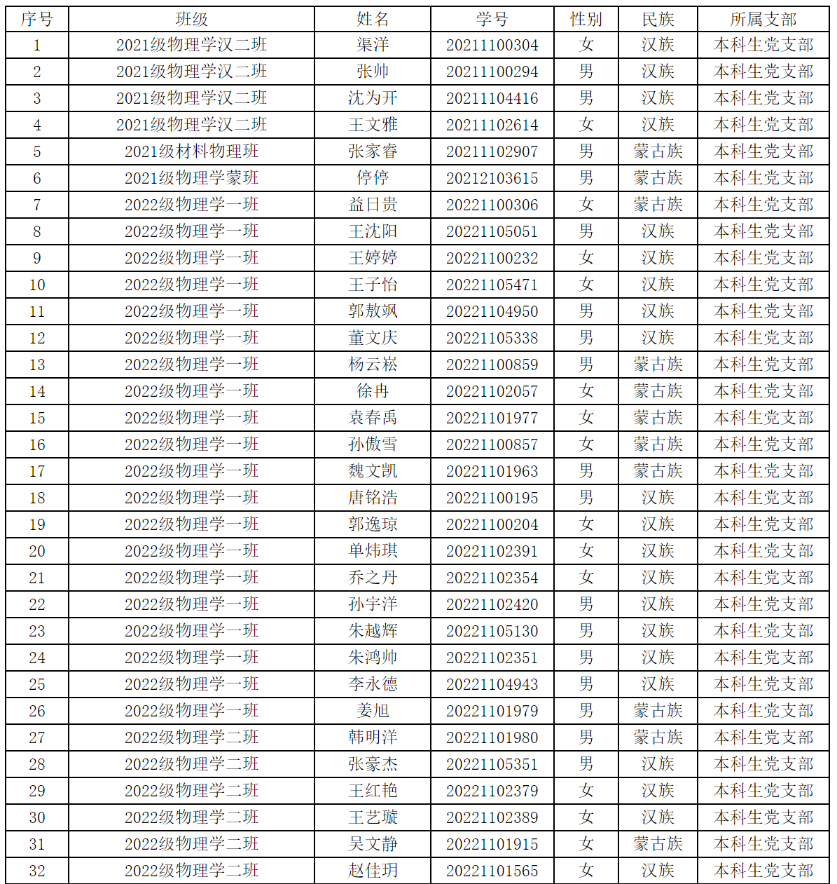 根据党章及中国共产党发展党员工作细则的有关规定,现予以公示,接受党员群众监督。凡对公示对象有意见及异议者,请在公示期内以口头或书面形式向本科生党支部或公司党委反映。