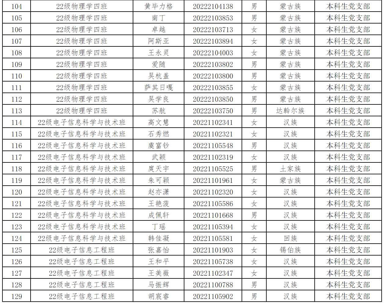 根据发展党员工作有关规定,经英国威廉希尔公司本科生党支部支委会讨论,同意确定相然等129名同志为第十七期发展对象。根据发展党员工作有关要求,现予以公示。