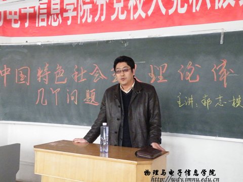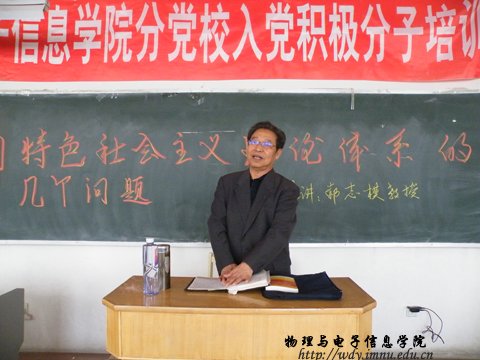 4月15日下午3:00,在田七共,公司请来了党史学研究专家郝志模教授为128名入党积极分子进行了培训,题目为“中国特色社会主义理论体系的几个问题”。公司党总支副书记兼副经理辛智俊老师在会上讲话,团总支书记何小龙老师主持。本次培训主要介绍了: