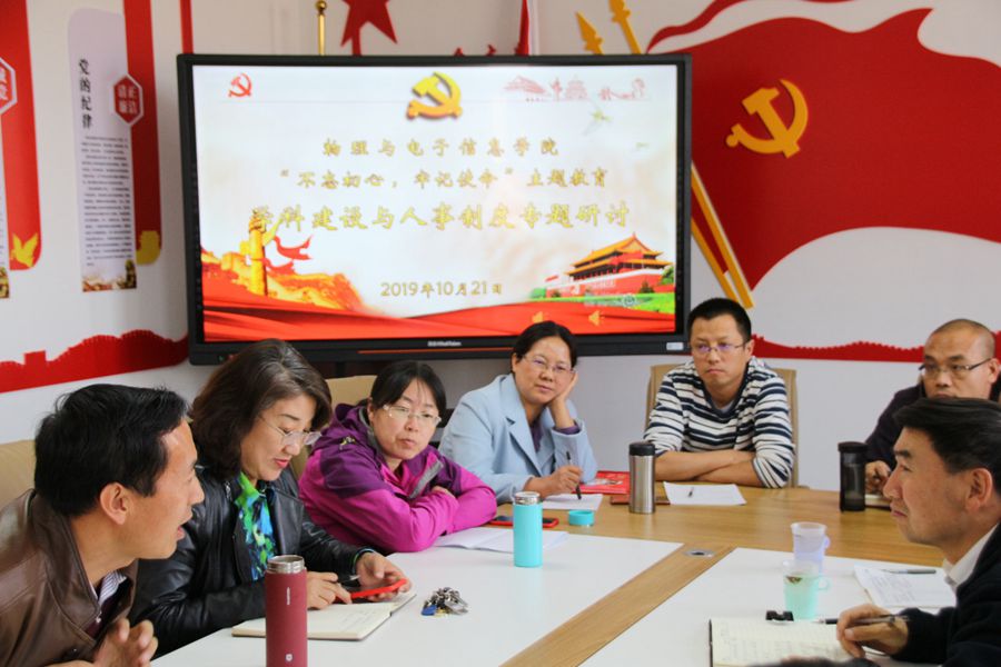 10月21日下午,公司召开“不忘初心,牢记使命”主题教育团队建设与人事制度专题研讨会,公司指导组张克玉、张成梅、董强到会指导,公司领导班子成员、各系主任、硕士点负责人、教师代表参加研讨,会议由副经理曹永军教授主持。