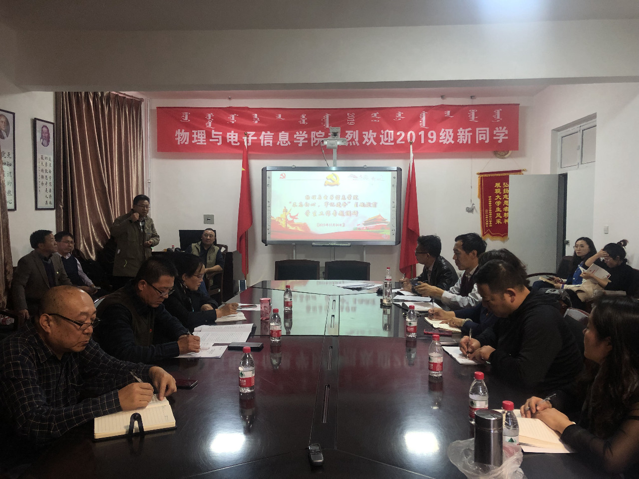 10月24日下午, 公司“不忘初心,牢记使命”主题教育员工工作专题调研会在赛罕校区物理楼304室召开。集团第六指导组张爱民、张成梅、董强老师到会指导,公司领导、各年级班主任、团学干部、辅导员以及员工代表参加了本次调研会,会议由公司党总支副书记兼副经理张伟主持。