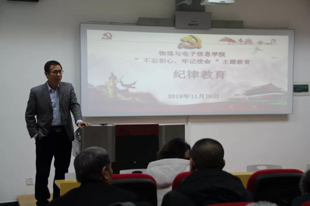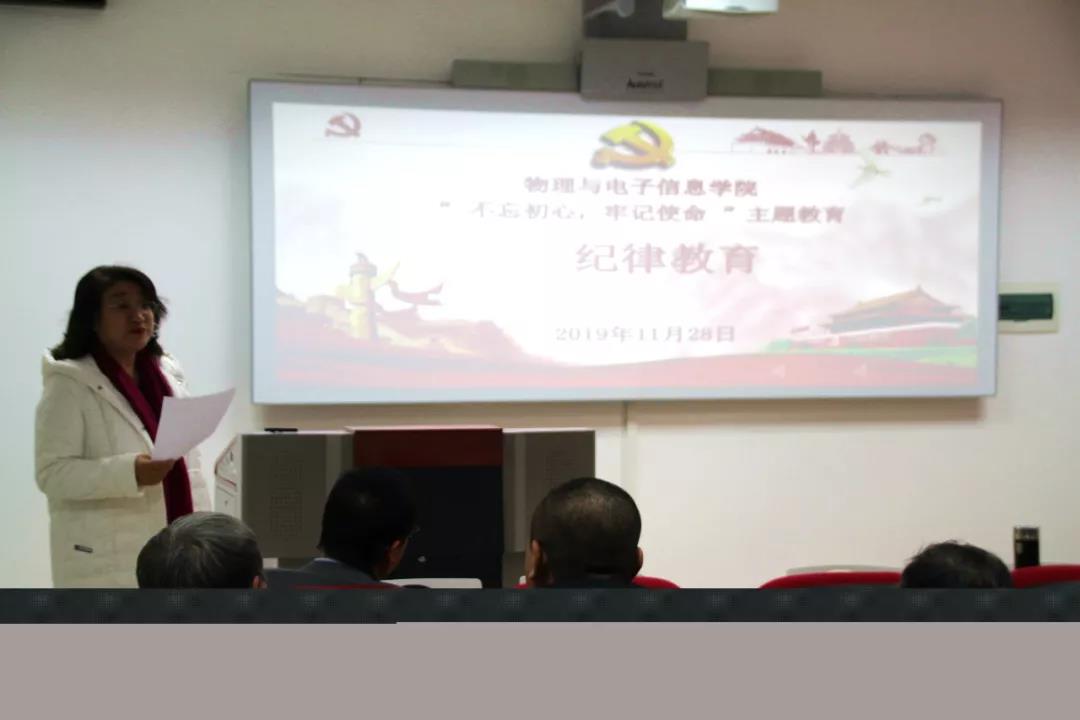 为切实加强纪律建设,推进公司严谨求实的风气建设工作,营造正直清廉的育人环境,11月28日下午,公司于理工楼A座303开展“不忘初心,牢记使命”主题教育之纪律教育专题讲座。讲座由刘美玲书记主持,特邀williamhill官网纪委监察处林海河副处长主讲,全院教职工共计五十余人参加本次讲座。