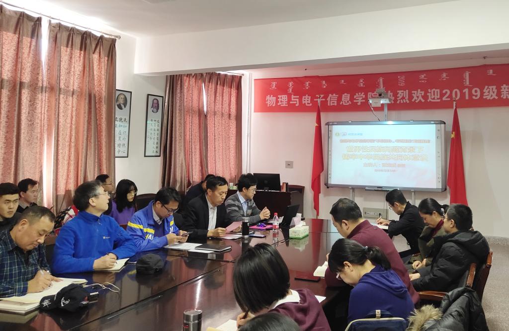 12月12日下午,公司在物理楼304会议室召开“不忘初心,牢记使命”主题教育专题学习会,公司党委委员、宣传部部长张宝成教授出席会议为全体党员讲党课,主题为“世界性民族问题背景下铸牢中华民族共同体意识”。会议由曹永军副经理主持,公司党总支书记刘美玲,党总支副书记兼副经理张伟,副经理那日苏、全体教职工以及研究生党员聆听了讲座。