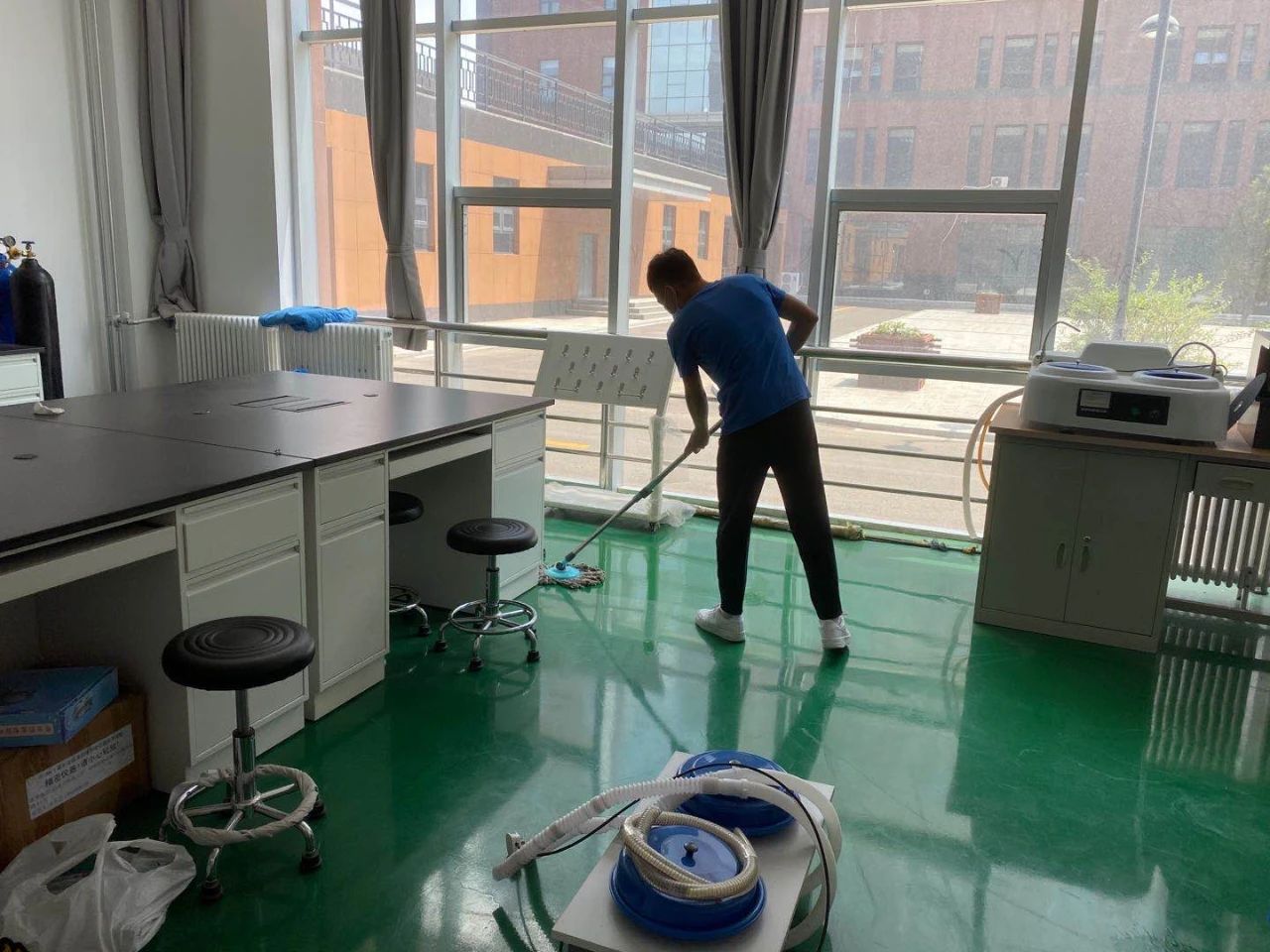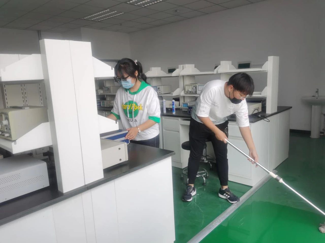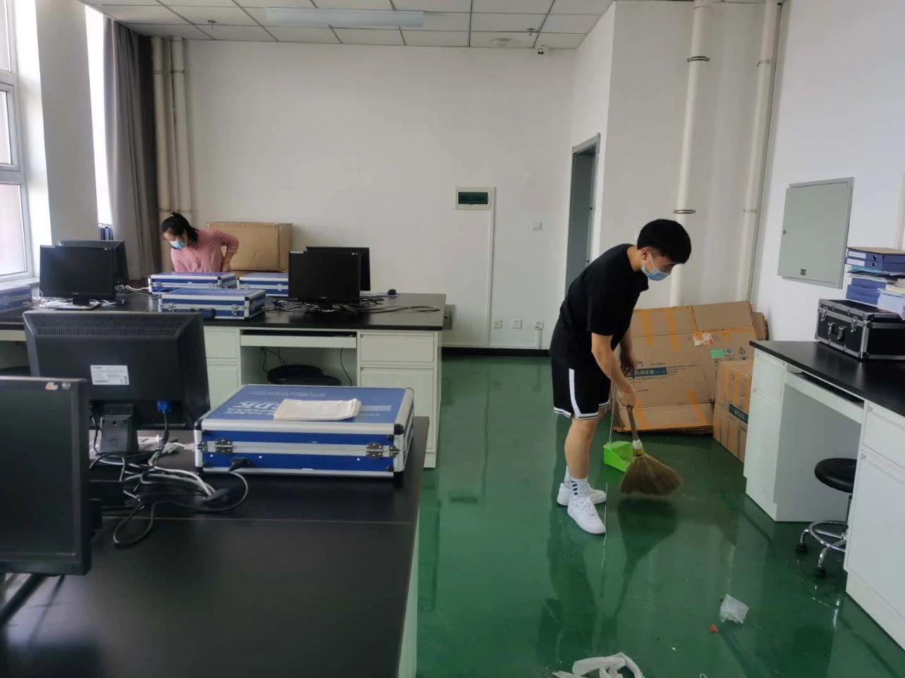 员工党员以班级为单位,分8个清理小组,对理工楼第一、五、六、七、八、十、十一和十二层实验室进行卫生清扫。活动中,大家纷纷拿起扫帚、拖布、抹布等工具,打扫尘土,清理桌面和地面污垢,经过2个小时的分工协作,各个实验室洁净如新。