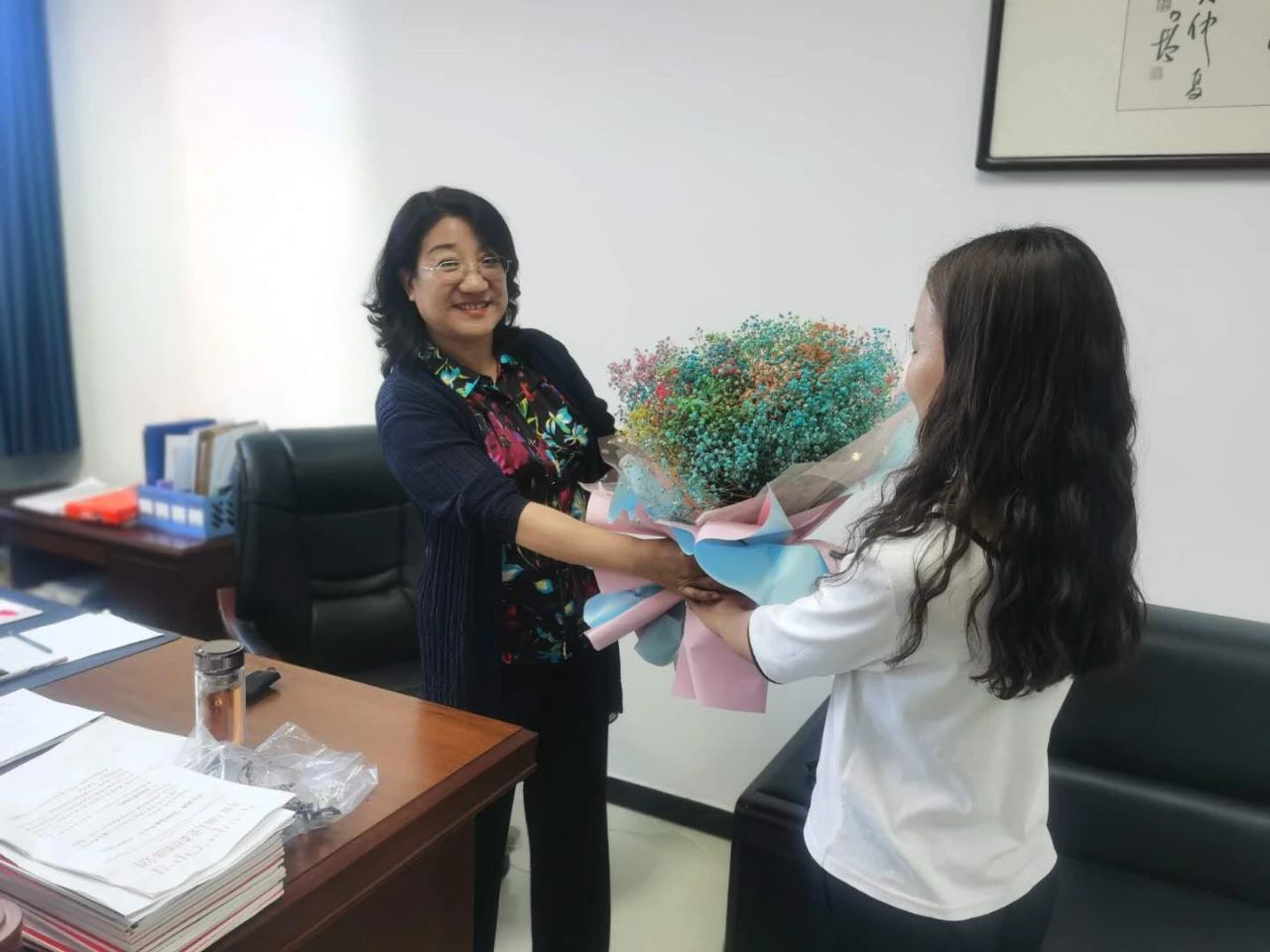 9月10日下午,党员同学们拿着准备好的鲜花亲自送到每一位老师的手里,并亲口对老师说出“教师节快乐”。一句句“教师节快乐”抚慰了老师们的心,这不仅是对老师们日日夜夜辛勤工作的肯定,也是对老师们默默付出之后的温暖回应。在收到同学们的鲜花后,老师们深表欣慰,在第一时间感谢大家的用心准备,同时回赠寄语:“希望同学们努力学习,贯彻党的宗旨积极为同学服务,发挥党员的先锋模范作用,不辜负老师们辛勤教导与殷切希望。”