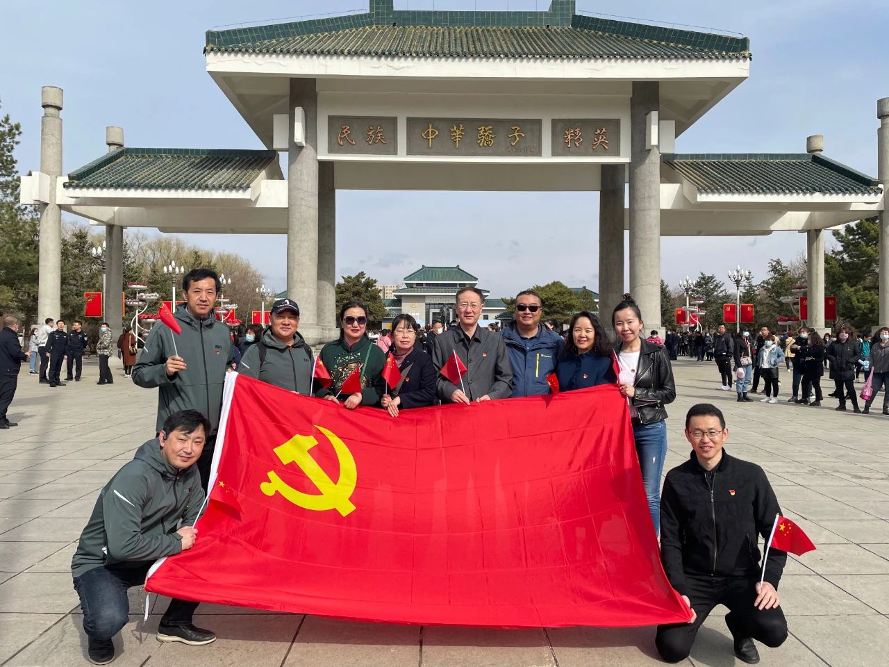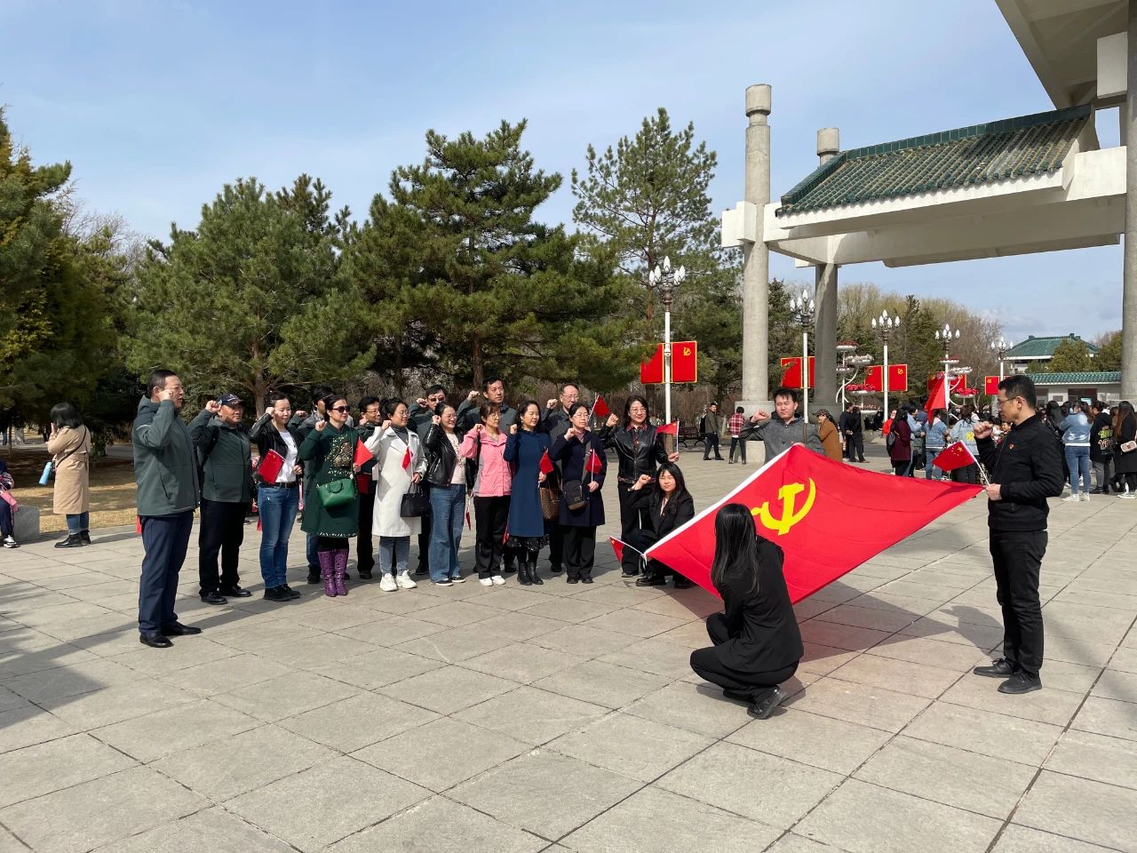 在参观完纪念馆后,全体党员肃立在乌兰夫同志雕像前,重温入党誓词。
