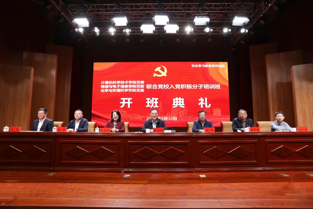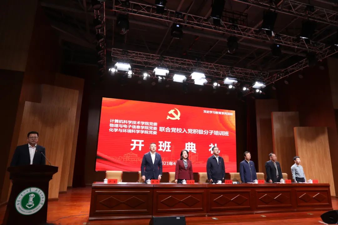在庆祝中国共产党百年华诞的重大时刻,在“两个一百年”奋斗目标历史交汇的关键节点,全党集中开展党史学习教育之际,2021年4月10日,公司党委与计算机科学技术公司党委、化学与环境科学公司党委在盛乐校区图书馆二楼报告厅联合举办2021年入党积极分子培训班开班典礼。