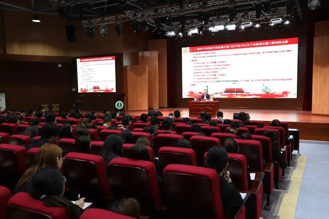高云峰研究员从理论内涵、历史脉络、政治要求、政策表述等多个角度,深入浅出地解读了铸牢中华民族共同体意识、推行国家统编教材使用和推进通用语言文字教育的重要意义,详细解答了“怎么看”和“怎么办”两个问题。高云峰强调,各位入党积极分子要认真领会铸牢中华民族共同体意识的深刻内涵,不折不扣的贯彻党和国家的方针政策,坚决推行国家统编教材使用和国家通用语言教育,真正做到“两个维护”,做“铸牢中华民族共同体意识”坚定的维护者和忠实的践行者,凝聚起同心共筑伟大中国梦的磅礴力量,为庆祝中国共产党成立一百周年奉献青春力量。