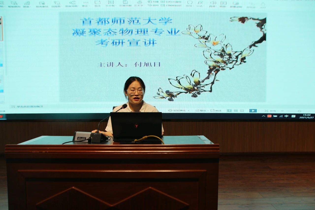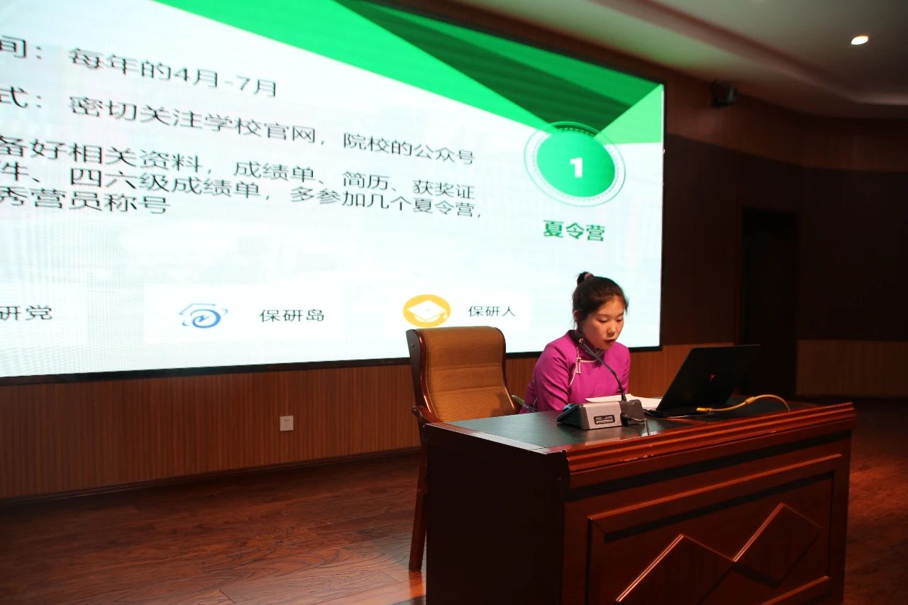 本次座谈会共包括三项议程。首先,考研宣讲团成员分享了考研经历。17级物理学汉班王华琛、李萌虎、付旭日,17级物理学蒙班娜日苏和18级凝聚态物理专业研究生孙丽婷讲述了各自的心路历程,嘱咐同学们踏实学习,不负青春。随后,物理系系主任朝克夫进行了总结讲话。他详细分析了公司优势,横向对比、纵向深入比较了院校间的特色,给同学们推荐了符合个人实力的院校,并以“坚持就是胜利”鼓励同学们鼓足力、咬紧牙面对考研的压力。最后,18级、19级物理学专业本科生与考研宣讲团成员合影留念。