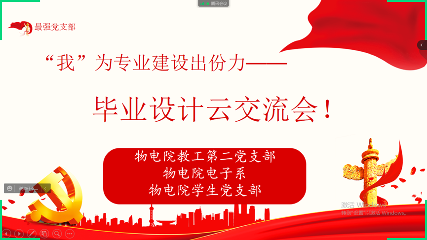 根据公司党委2022党建工作要点要求,落实组织生活会整改任务、持续推进“最强党支部”建设,以“严明党的政治纪律,严肃党内政治生活”为主题,英国威廉希尔公司教工二支部、本科生支部与电子系于5月14日联合开展“‘我’为专业建设出份力——毕业设计作品云交流会”活动。