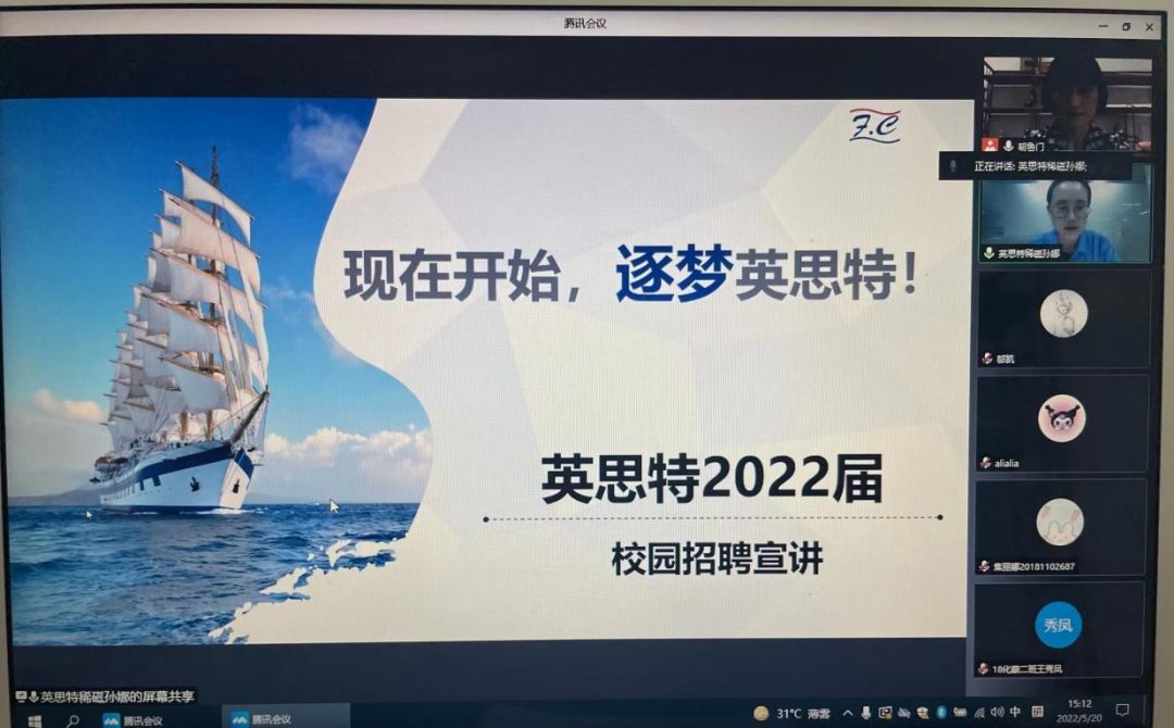 5月20日公司联合化学与环境科学公司举办“包头市英思特稀磁新材料股份有限公司”就业宣讲会。英国威廉希尔公司辅导员朝鲁门和包头市英思特稀磁新材料股份有限公司人事专员孙娜女士、英国威廉希尔公司、化学与环境科学公司2022届毕业生参加会议。宣讲会由英国威廉希尔公司辅导员朝鲁门主持。