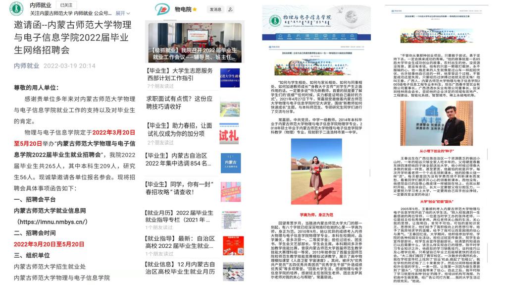 公司充分挖掘物理系、电子系、材料系教师就业资源和员工资源,将就业推荐与专业实习、毕业设计有机结合,扩展社会企业对接渠道,积极开拓市场性岗位。公司教师积极联系了显泓科技、万德、起立科技、科电数据、上海霆华能源、内蒙古欧晶科技股份有限公司等用人单位,从3月份开始陆续为员工提供线上面试机会。历届毕业生员工也积极推送所在单位的招聘信息。为了搭建毕业生求职和用人单位招聘的对接通道,公司于2022年3月20日至5月20日举办“williamhill威廉希尔2022届毕业生专场网络招聘会”,努力实现云中招聘不断线,云中服务不断档,就业指导不停歇。