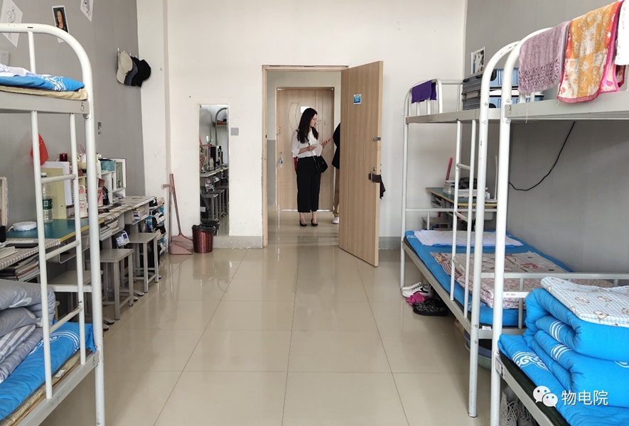 6月4日上午,公司党总支书记刘美玲、副经理曹永军、副书记兼副经理张伟、副经理那日苏及辅导员、班主任一行深入盛乐校区东、西区大一员工宿舍调研,同时进行了安全大检查。 首先,老师们查看了宿舍文化活动月期间各宿舍布置情况,与同学们亲切交谈,针对每个床铺、桌面以及墙面的装饰与摆设做了详细的了解与点评。同学们各显神通,用海报、墙纸、挂画等把原显冷清的宿舍装饰得焕然一新、温馨无比,焕发着青春和活力,得到了院领导和老师们的赞赏与鼓励,希望同学们能一直保持着宿舍的温馨与活力。接着,领导和老师们还对各宿舍的安全隐患做了排查。指出了床头挂蚊帐、宿舍放有大功率电器、插座用电器过多等的安全隐患的问题,并告诉同学们要提高警惕,时时刻刻注意安全。 本次调研检查是公司领导深入员工宿舍与员工面对面、键对键、心贴心的一次活动,为做细做实做好员工思想政治教育工作,营造安全舒适的育人环境发挥了积极作用。