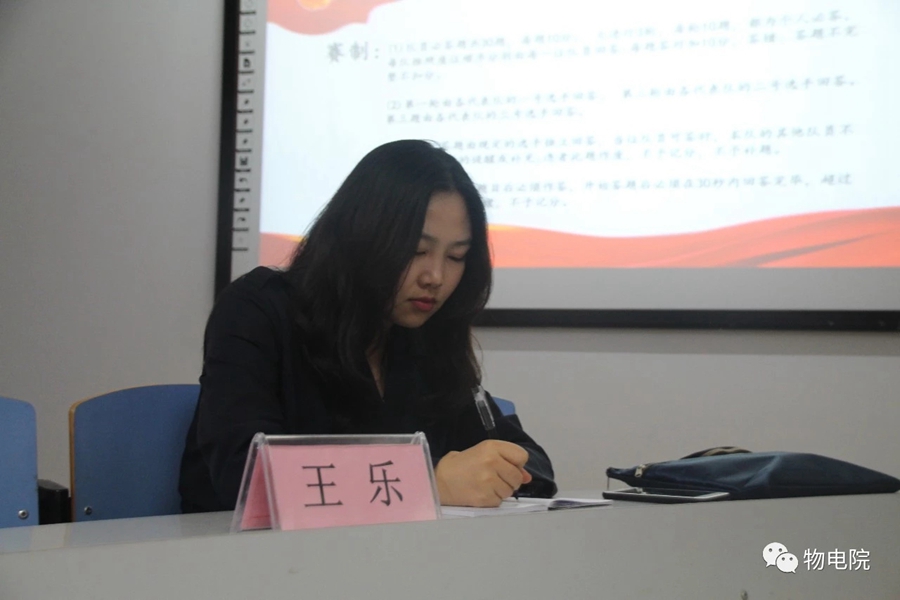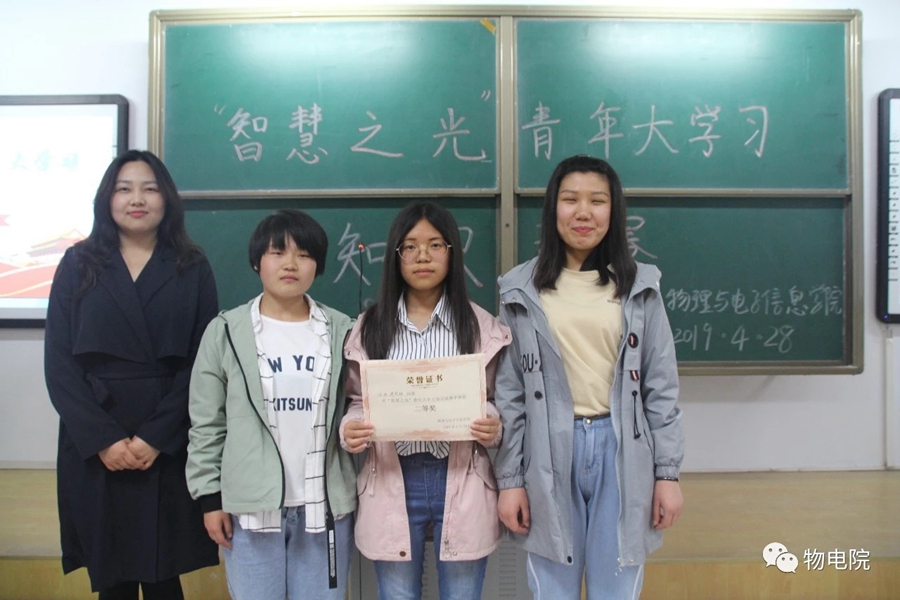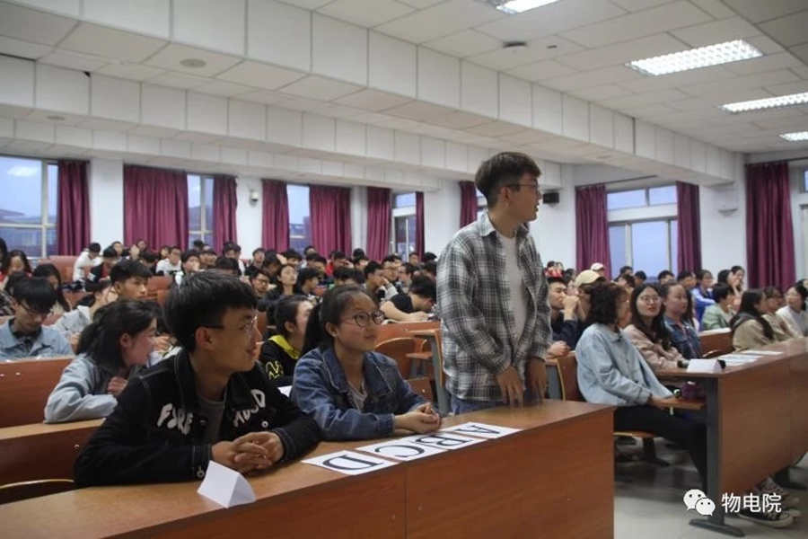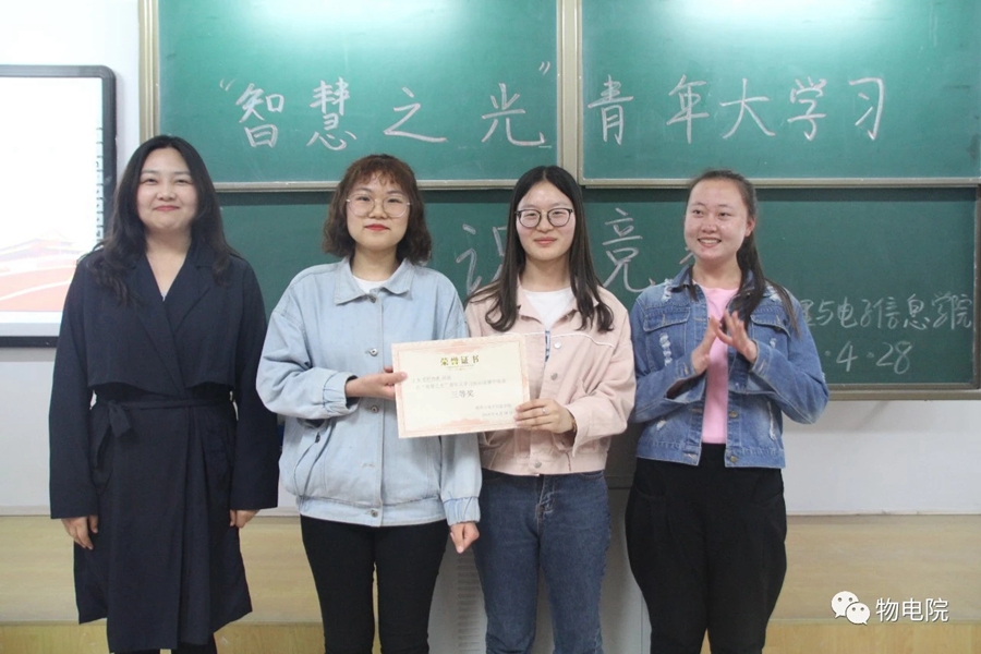 为响应共青团中央发出的部署全团开展“青年大学习”行动的通知,推动习近平新时代中国特色社会主义思想在青年中入耳入心,引导广大青年不忘初心、牢记使命,切实增强“四个意识”、坚定“四个自信”,4月28日,公司于行知楼306 举行了 “智慧之光”青年大学习知识竞赛。辅导员王乐担任评委,来自17、18级的七个班级组成的代表队参赛。 本次比赛分为队员必答题、团队必答题和风险题三个部分。在主持人宣读规则后,比赛正式开始。在必答题部分,同学们沉稳发挥、对答如流,无论是个人题目还是团体题目,都取得了不错的成绩。接下来到了紧张刺激的风险题,在答错倒扣分数的压力下,选手们的大脑高速运转,超常发挥连续拿分。经过一个小时的激烈竞争,最终,比赛以18级物理汉班、18级电子信息科学与技术班、18级材料物理班获得前三名而落下帷幕。 通过此次活动,使同学们重新回顾了青年大学习中所学的知识,扎实了理论基础。作为新时代青年,同学们今后更要以十九大精神为指引,将十九大精神落实到自己的学习与生活中,崇尚实干,敢于担当,为实现伟大中国梦而不懈努力。