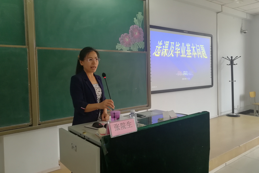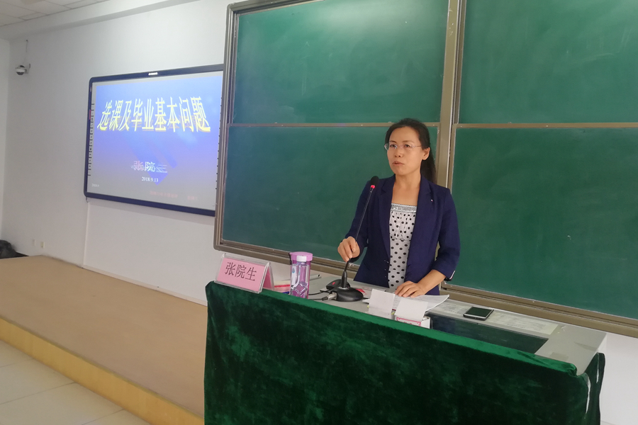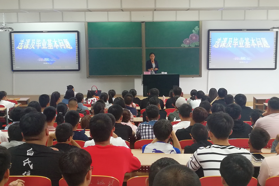 2018年9月13日公司于行知楼225教室为2018级新生进行《选课及毕业基本问题》讲座,公司张院生老师担任主讲人。