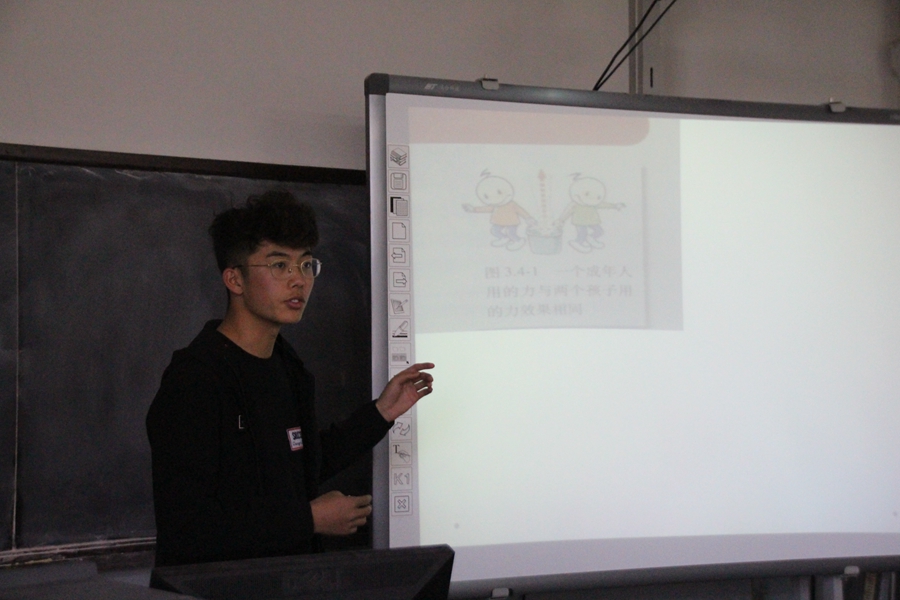 比赛开始前,各位参赛选手在候场区专心备课。在比赛开始后,选手将抽题进行五分钟的即兴演讲,随后进行模拟授课。比赛过程中选手们各显风采,教学内容严谨详尽,教学方法新颖独特,展现出物电学子良好的精神风貌,赢得了老师的一致认可。之后又进行了笔试部分,对高中物理知识教学内容进行了考查。赛后,在座师生就比赛过程展开了讨论与分析,评委老师对每个参赛选手都进行了点评,在场同学纷纷表示受益匪浅。