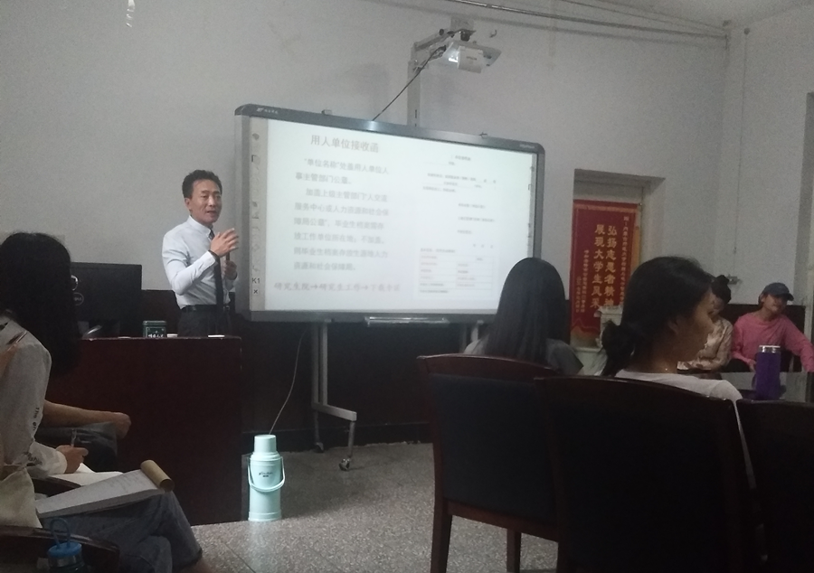 本网讯 韶华似水,时光绕指渐行,转眼一年一度的毕业季如约而至。为给研究生提供更好的就业指导服务,解答研究生在就业方面的问题,2018年6月6日,公司于物理楼会议室举办就业专题讲座。讲座的主讲人是研究生事务办公室主任满达老师,2015、2016、2017级研究生参与讲座。 研究生事务办公室主任满达老师首先以数据的形式对研究生历年就业去向进行简单的梳理。接着重点阐述了就业手续办理的具体流程。同时为大家提供了就业信息渠道,帮助大家更快更好地就业。讲座最后在同学和老师踊跃互动的氛围下结束。