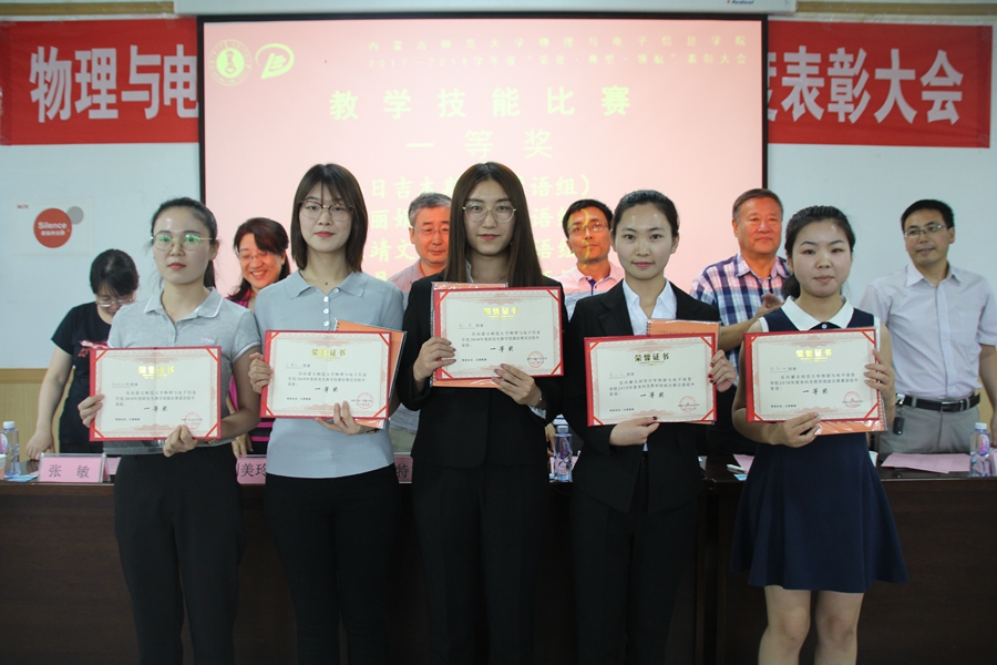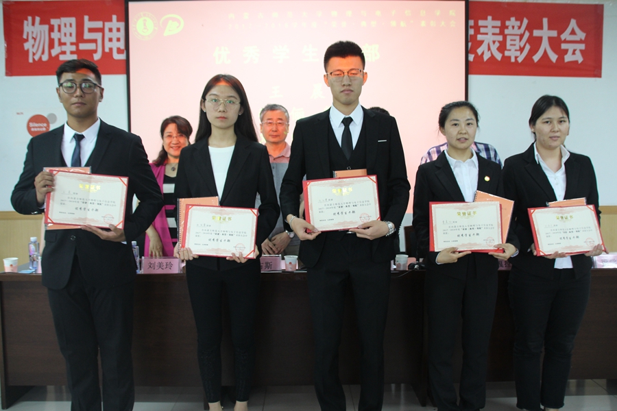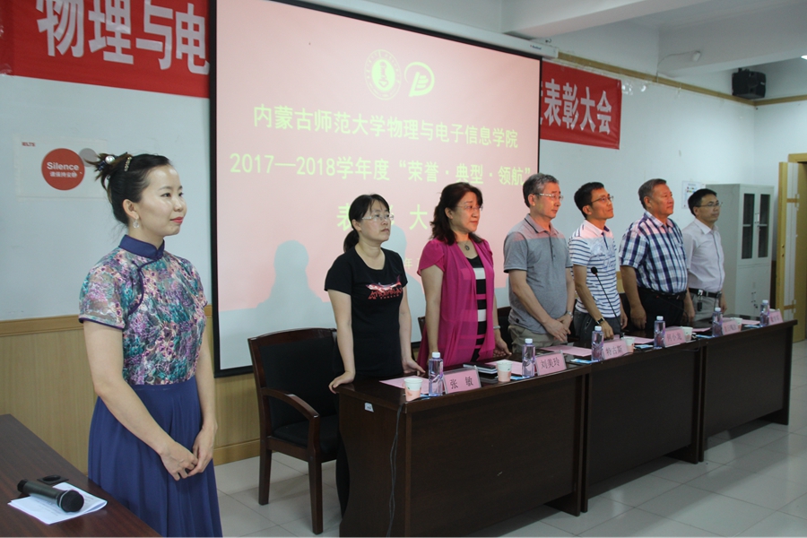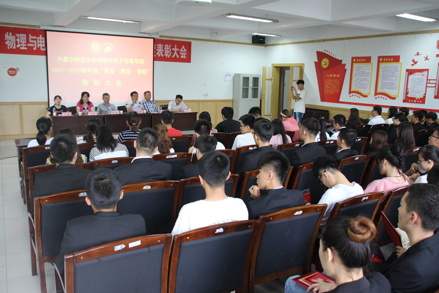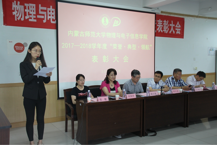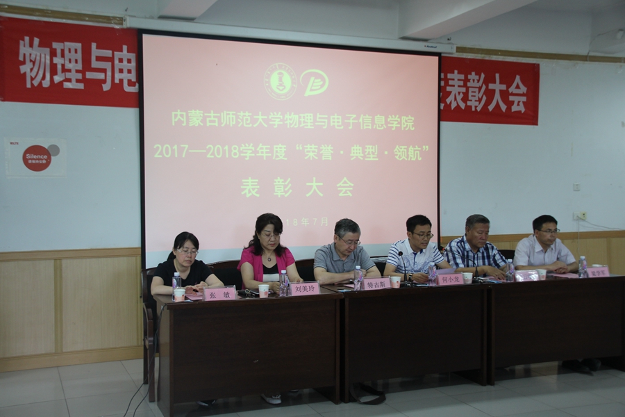 为表彰先进集体及个人,树立典型,激发广老员工的学习与工作热情,7月5日下午,公司于文史楼一号会议室隆重召开英国威廉希尔公司2017—2018年度“荣誉·典型·领航”表彰大会。公司经理特古斯教授、党总支副书记何小龙老师、副经理吉日嘎拉教授、副经理刘美玲老师、物理系主任张敏教授及电子系主任梁学军老师出席本次表彰大会,公司团总支书记萨其尔老师主持会议。在本次表彰中,公司共有包括本科生与研究生在内的70名同学、三个班集体以及三个宿舍荣获12项荣誉。