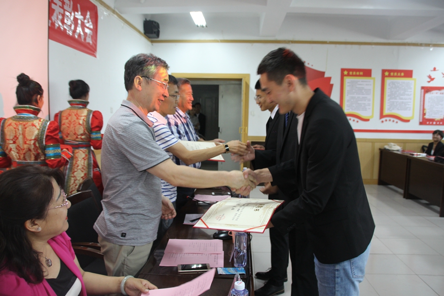 大会在激昂的国歌声中拉开帷幕。萨老师介绍出席大会的领导嘉宾后,由副经理吉日嘎拉教授宣读获奖名单,并对受到表彰的先进集体和个人表示热烈的祝贺。随后,公司领导为受表彰集体与个人颁发荣誉证书。
