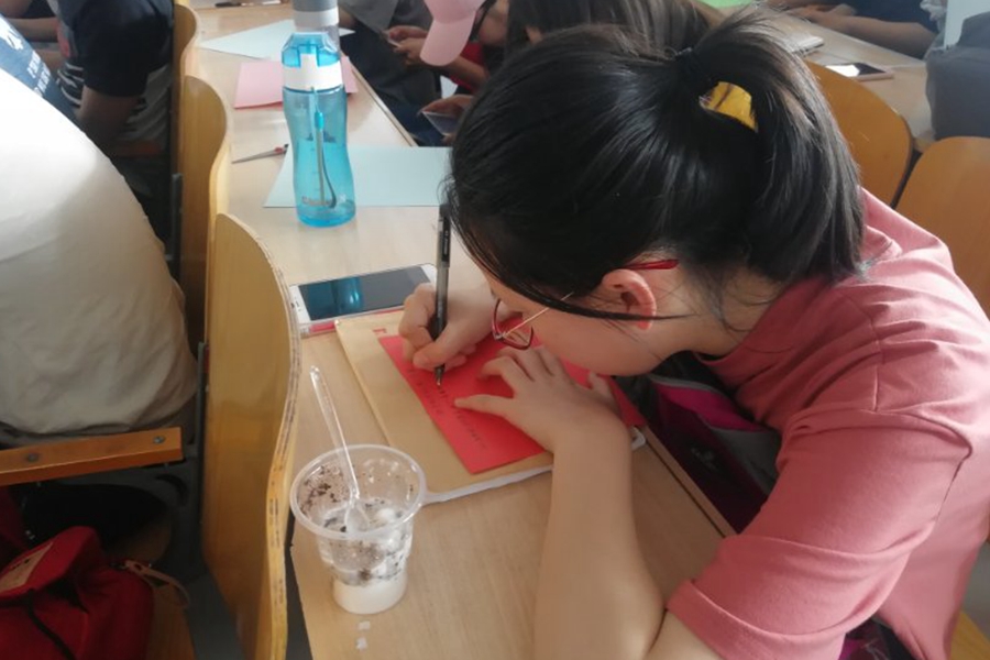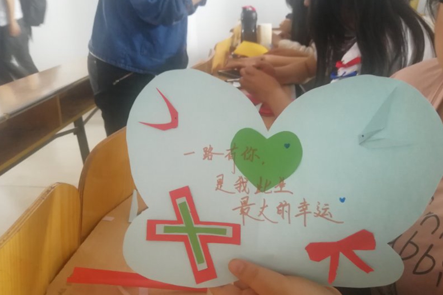 活动首先由王诺兰同学发言,告诉了同学们“树欲静而风不止,子欲养而亲不待”的道理。紧接着,同学们开始自愿分享自己的感恩事迹及感恩祝福, 全场气氛热烈而轰动。最后, 让感恩之心付诸于行动,同学们开始制作感恩贺卡。每个同学都将身心投入到贺卡的制作当中,每张贺卡都融入了同学们深深的感恩和浓浓的祝福。