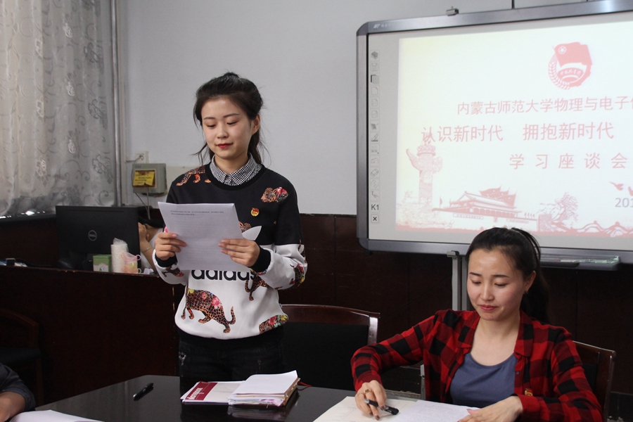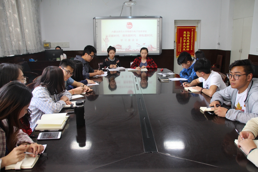 2018年5月4日,公司于物理楼会议室召开“认识新时代,拥抱新时代,耕耘新时代”学习座谈会,学习习近平总书记5月2日在北京大学师生员工座谈会上的讲话与李纪恒书记5月3日在内蒙古工业大学形势政策报告会上的报告精神。公司各班级团员代表共54人参加会议,学工办木其尔老师主持会议。