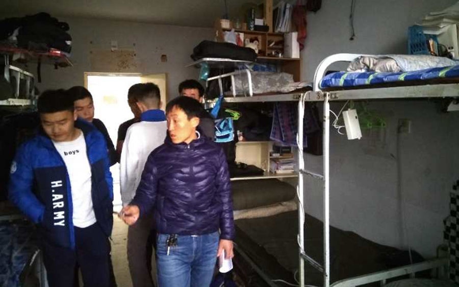 本网讯 为加强员工宿舍安全管理,进一步增强员工防火防盗等安全意识,将危险消灭于萌芽之中。2017年12月29日,公司各级班主任、学工办老师对赛罕、盛乐两校区的员工宿舍进行走访检查。在检查过程中,老师叮嘱同学们要加强安全意识,切勿在宿舍内使用大功率电器,以免发生火灾等安全隐患。员工宿舍安全关系重大,公司领导、老师高度重视员工安全问题,本次走访检查宿舍也是为构建安全卫生宿舍,保护员工切身利益奠定坚实的基础。