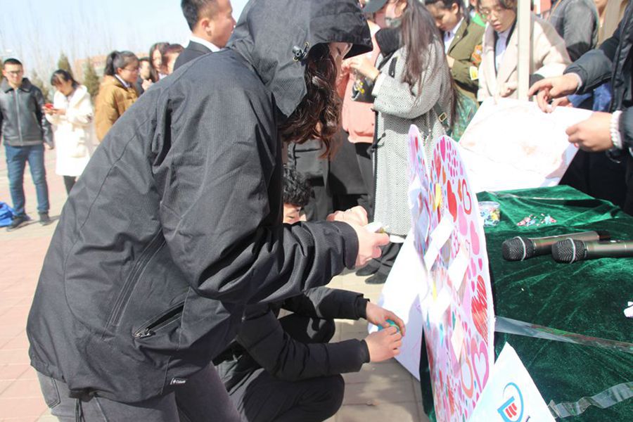 在活动举办前,经过紧张有序的准备工作,工作人员将场地搭建完毕。活动第一个环节是“心愿”, “逢考必过”、“愿有人陪伴一同去图书馆”、”完成自己的理想”,女孩们纷纷在愿望板上面写下自己的愿望。男孩们则是在祝福板上写下对女孩们的美好祝愿与自己的爱慕之情。整个活动场地充满了青春的气息。还有各式各样的小游戏。男女一组的踩气球比赛:气球随风飘动,同学们嘴角上扬,活力四射;十男十女的配数游戏,同学们紧张而又拘束,体现出青涩的朦胧美……同学们的欢声笑语也感染了路过的同学,越来越多的员工加入进来。