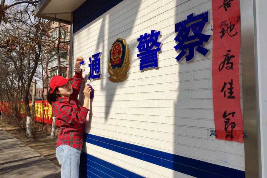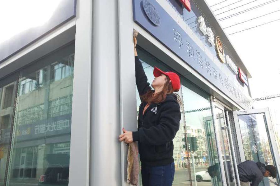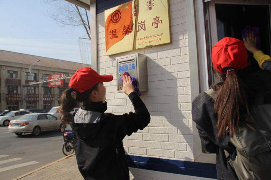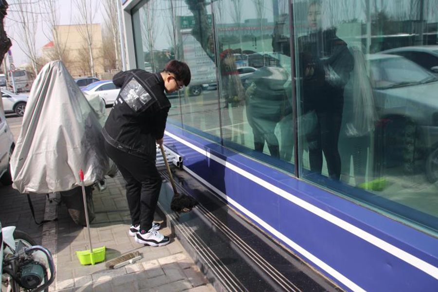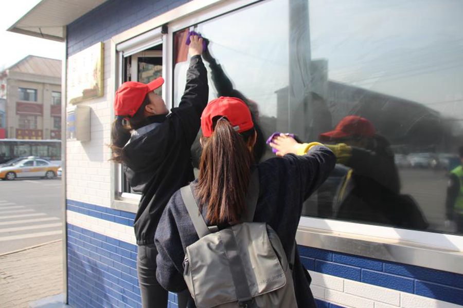 本次活动由员工会副主席德力根杭盖带三支队伍,对卫生清理工作进行统一安排,明确分工。同学们各负其责,相互配合,开始了对岗亭彻底的打扫整理。玻璃,地板,门框,同学们不放过任何一个死角,里里外外都是认真忙碌的身影。通过大家的共同努力,三个岗亭门窗、玻璃擦拭得透亮明净,物品摆放井然有序。每个岗亭都干净整洁,面貌焕然一新。虽然一上午的劳动很辛苦,但对他们来说,为人民服务带来的喜悦与自豪远远多于辛苦。大家以雷锋为榜样,从身边的小事做起,不怕脏,不怕累,为我们环境清洁做出一份贡献。在活动结束后,志愿者们与执勤民警合影留念。