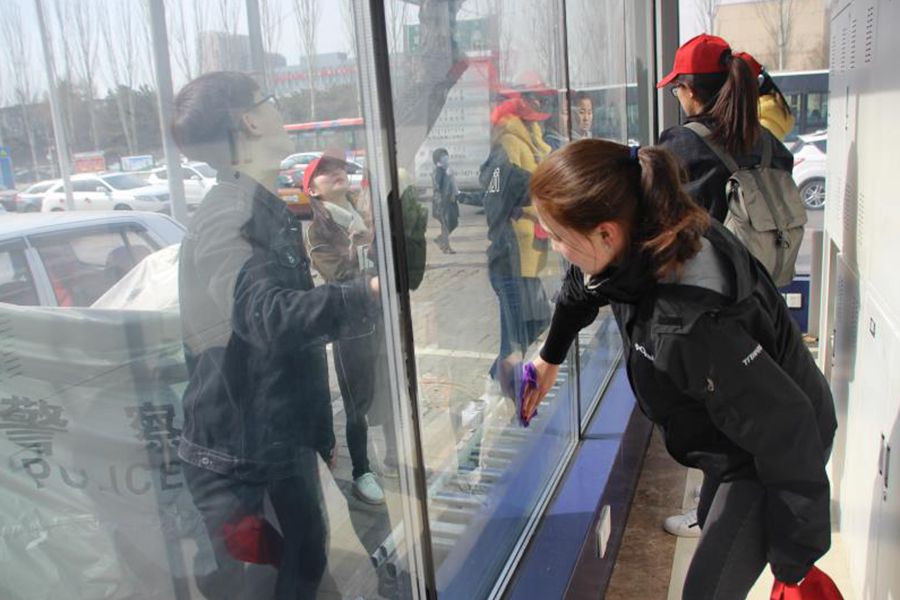 为了弘扬雷锋精神, 深化青年志愿者活动,3月11日上午,公司正e联盟组织xx名员工志愿者来到昭乌达路进行清洗岗亭活动。