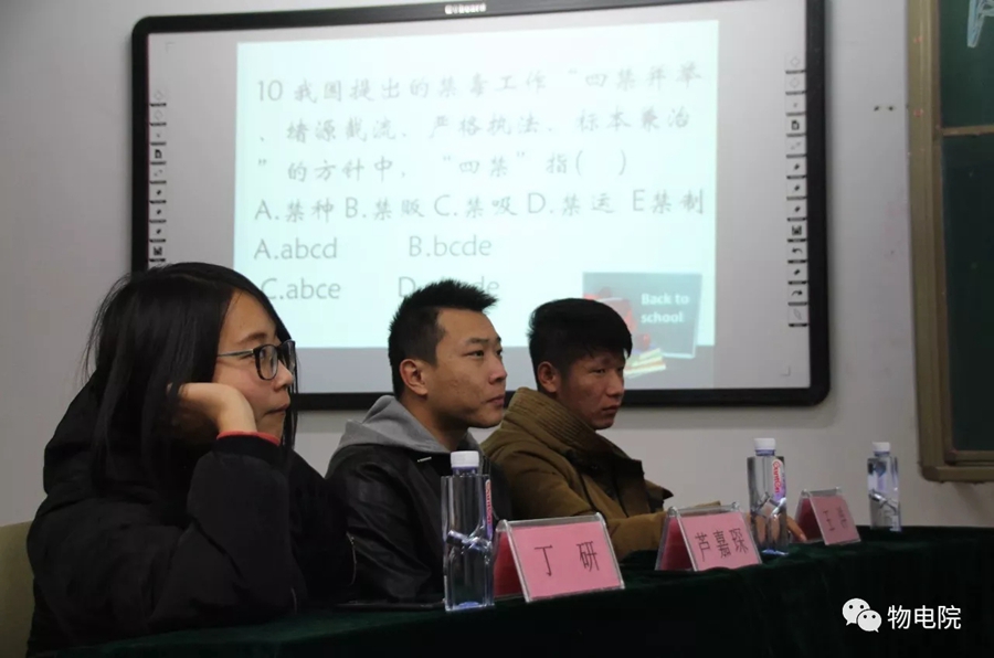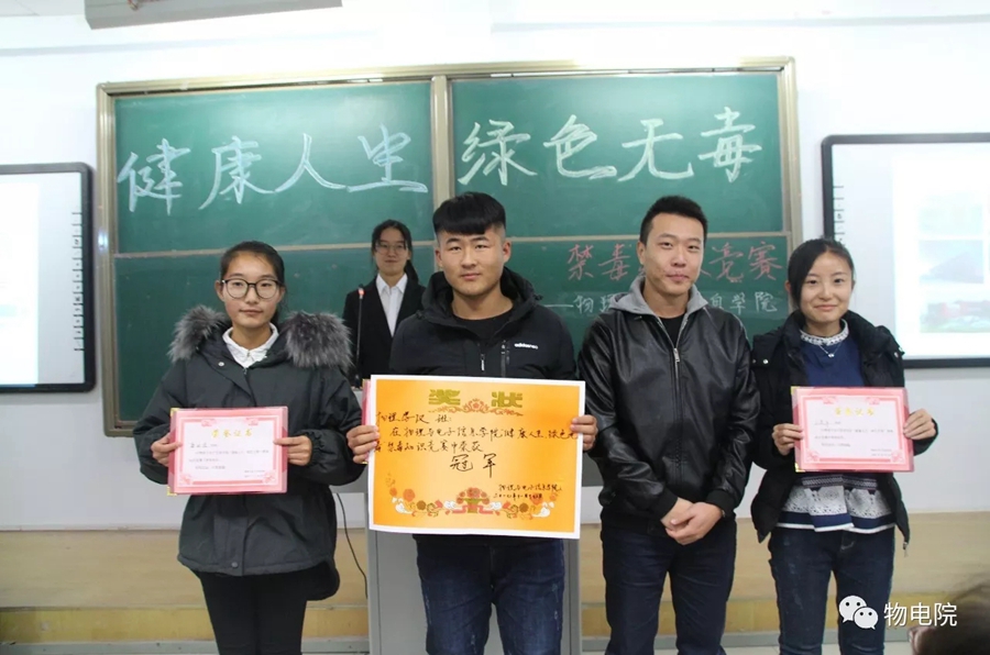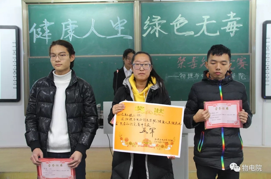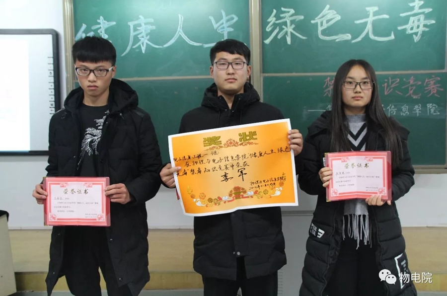 本网讯 公司响应公司2017年秋季开学在校员工毒品预防教育工作,以“健康人生、绿色无毒”为统领,以毒品危害为宣传重点,积极运用新媒体、新手段和新形式开展青少年毒品预防教育工作。于2017年11月17日在行知楼118教室举办了“健康人生、绿色无毒”禁毒知识竞赛。由学工办芦嘉琛老师、员工会主席团成员担任评委。 竞赛过程中同学们激情四射充满信心,将自己赛前的准备与自己的智慧完全发挥出来了。赛事由团体竞赛、个人竞赛、个人抢答赛、团体抢答赛组成。各位队员沉着冷静,难题被一道道的攻克。抢答过程中手速的对决也为竞赛增添了不少乐趣。 在竞赛中场休息时,芦老师向全体员工讲述了如笑气等新型“软”毒品,并告诫同学切莫沾染毒品,同学们在了解新型毒品的基础上对其危害加深了认识。 比赛最后,物理学汉班获得冠军、工程二班获得亚军、工程一班获得季军,由芦嘉琛老师向获奖班级颁奖,以资鼓励。 本次知识竞赛成功的宣传了禁毒的重要性,加强了同学们对毒品的认识,了解到了丰富的有关禁毒的知识,以免因对毒品危害了解不深而误入歧途,沾染毒品。