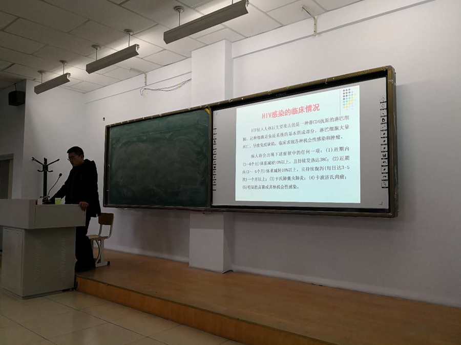 2017年12月8日星期五。呼和浩特市疾病控制预防中心王老师为公司工程一、二班、物理学蒙班同学在行知楼224进行普及艾滋病知识讲座。