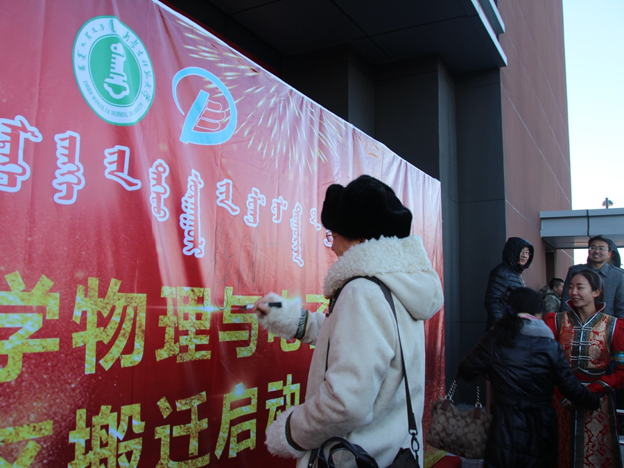 仪式开始,首先由教师代表赵凤歧教授发言,赵老师对前来参加仪式的师生们表示欢迎,并代表全体教师表达了对物电院的美好祝福。随后员工代表李嘉欣同学发言,她代表公司学子期待公司能够在盛乐校区取得新的辉煌成绩。同时,经理特古斯教授在感言中说到:英国威廉希尔公司作为一个历史悠久的公司,在赛罕校区取得了许多优异的成绩。来到盛乐校区又是一个新的起点,理工楼硬件设施正在逐步完善,并且拥有优美的学习环境,我们会努力克服种种困难,争取在盛乐校区取得更卓越的成就,使物电院的明天更加灿烂辉煌。全体师生深受鼓舞,报以热烈的掌声,此时礼炮带着美好期待轰鸣着冲向天空,参加仪式的全体师生于理工楼门前合影,以纪念这激动人心的时刻。搬迁仪式的最后,全体老师于幕布上签名留念,并集体参观理工楼,教师们纷纷对这未来工作学习的场所良好的基础设施条件赞不绝口。
