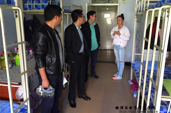 本网讯 2017年5月8日与9日晚上,公司党总支副书记何小龙老师、团总支书记萨其尔老师、学工办苏雅拉老师、塔林托亚老师以及各班班主任对全院各个年级的宿舍的卫生状况、安全防范意识进行检查。