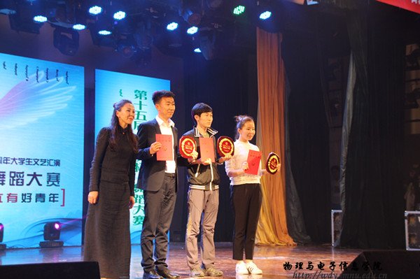 伴随着所有节目的全部结束,主持人宣布获奖单位和个人名单,公司团总支书记萨其尔老师作为公司代表上台接过第十五届“百灵杯”舞蹈大赛二等奖奖牌与最具人气奖,并且萨老师与塔林托亚老师还获得优秀指导老师奖项。在晚会结束后,公司党总支副书记何小龙老师与舞蹈演员们以及工作人员们亲切握手并合影留念表示祝贺。至此,第十五届“百灵杯”文艺汇演已全部结束。本次比赛荣获佳绩也显示出英国威廉希尔公司对老员工文化艺术活动的支持力度,舞蹈演员们也始终秉承着为公司争光的态度,努力训练,不怕累不怕苦,他们的完美表现再一次向全校展示“物电”精神!