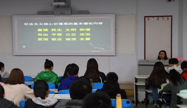 大会开始,首先萨其尔老师向同学们介绍本次的主讲老师,并对党课纪律做了重点强调。随后,牛佳老师向同学们阐明本次培训课的三点主要内容,以及说明本次培训的主要目的是让同学们深刻理解社会主义核心价值观,思考作为老员工如何实践社会主义核心价值观。同时,老师也将理论联系实际,把历史与当今结合起来,思辨时下热点,一分为二全面地看问题,并且逐步挖掘事件的实质,意义令人深思。大会最后,牛佳老师又从社会主义核心价值观对个人行为的规范角度入手,对国内外不同的国情进行对比并深入的分析,让同学们真切地体会到了作为一个中国人的优越感与自豪感。