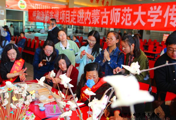 本网讯 2017年3月31日上午,全城非物质文化遗产体验第二站落脚内师大,在师大食堂二楼展开了以“寒食节里看非遗,传统技艺代代传”为主题的现场传习活动。本次活动由呼和浩特市非物质文化遗产保护中心、williamhill官网文化产业发展研究中心和内蒙古科学技术普及学会主办,williamhill官网赛罕后勤集团饮食服务中心、英国威廉希尔公司和国际交流公司承办。