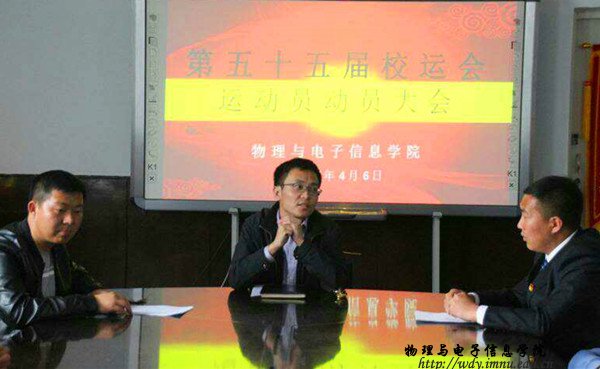 本网讯 2017年4月6日下午,公司在物电楼会议室召开第五十五届校运会运动员动员大会,公司党总支副书记何小龙老师、学工办苏雅拉老师、教练员玉林同学、员工会体育部成员以及公司运动员们参加本次会议,并由苏雅拉老师主持会议。