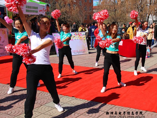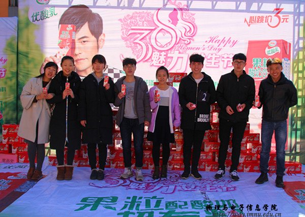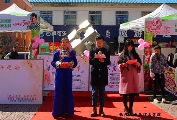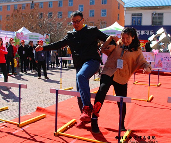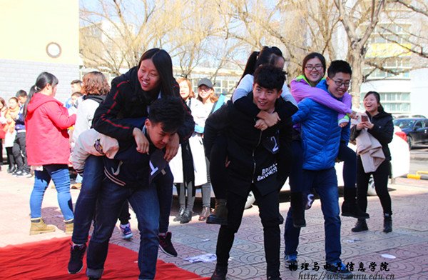 在活动开始前,许多同学到许愿墙前为自己或是身边要好的朋友写下自己在2017年的心愿,一时间许愿墙前人潮涌动,为活动成功举办开了一个好头。活动开始前由炫舞啦啦操对为现场观众奉献了一场激情四射的表演,在主持人宣布第八届女生节开始后,活动第一项男女生接力跑。此项目规则为本队男生将女生背起并跑到终点,在途中站点回答问题正确后方可由下一名男生背起女生前进。项目进行中观众反响热烈,纷纷为场上的队员加油助威,场面十分火爆,运动员们合作也十分默契,画面十分有爱。接力跑结束后,第二项活动两人三足障碍赛,此项活动规定至少有一名女生参与。有些选手们虽是临时组建,但是默契十足,顺利到达终点。与此同时进行的第三项活动制作面具,只限女生参与,希望女生可以画出心目中的他。至中午一点半第八届女生节主题活动圆满结束。