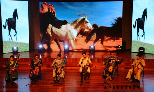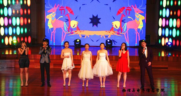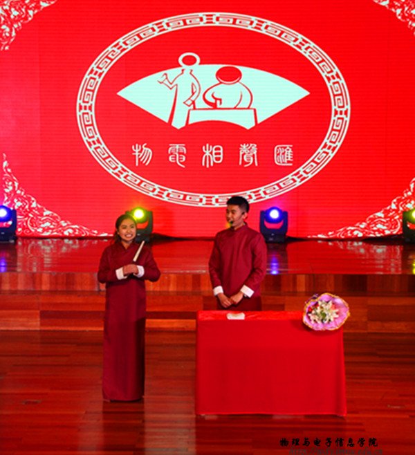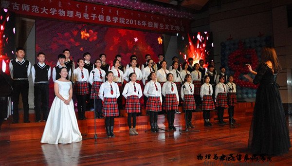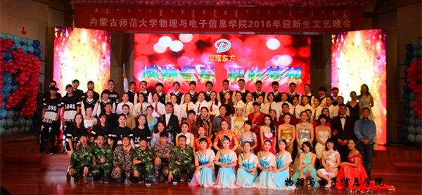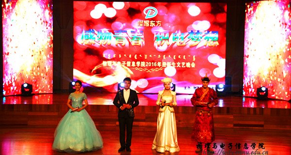 砥砺前行,继往开来,我们一起并肩而行,一路走来,多少过往都化作美丽的故事,在谈笑间,现场一段震撼人心的先导片聚焦起每一位观众朋友们的目光,视频开始用一段唯美的沙画展现了新生们所经历的精彩瞬间。同时,公司领导老师们和16级各班班主任欢迎新生们加入物电院,并表达了对新生们的殷切期望。随后,一缕悠扬的马头琴声,仿佛从深远的原野传来,《云青马》的自由奔腾正式拉开晚会帷幕。四位青春靓丽的主持人现身舞台中央,华丽的服装,走心的话语,无不体现着晚会的细致入微。民族风情浓郁的《希格希日》体现出草原儿女的热情豪放,《金蛇狂舞》的铿锵有力让全场领略了古筝的神奇美感。《十七岁》的我们用歌声诠释青春的气息;《鑫哥正传》用信仰追逐青春的足迹;《black pink》用舞蹈张开梦想的翅膀。年华似水,过往的《同学会》是短暂的美好,在谈笑间,《如此队友》以化为美丽的故事,《马头琴之恋》的岁月在惆怅交融间远去。动感的《bang bang bang》地带,放飞梦与希望的筑巢,燃烧青春不灭的火焰;《淳朴牧羊人》的诉说扣人心弦,回味无穷;尖叫与呐喊声中的《午夜梦幻》完美诠释出我们这个时代的最强音。热烈的情感盛放在时间里,不懈的追求怒放在生命中,《青春赞颂》将无限美好憧憬展现在脑海中,绽放着“物电人”的永不服输的向上精神。