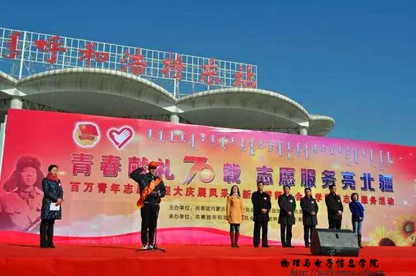 本网讯 2017年3月3日由自治区团委、内蒙古青年志愿者协会主办,呼和浩特市团委、呼和浩特市青年志愿者协会承办的“青春献礼70载 志愿服务亮北疆 百万青年志愿者迎大庆展风采建新功暨学雷锋志愿服务”主题宣传活动在呼和浩特市火车东站启动。公司志愿者代表队作为文化助残志愿者队参加这次活动。